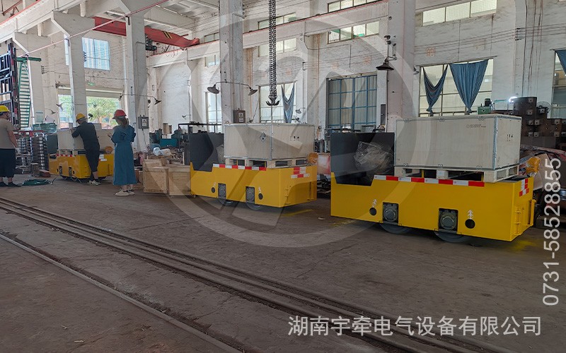 發(fā)貨區(qū)一片繁忙景象,一批定制型湘潭2.5噸鋰電池電機車及配件即將開啟出口海外的旅程。此次出口的無頂棚型湘潭2.5噸鋰電池電機車,以高效節(jié)能的突出優(yōu)勢,成為海外小型礦山運輸設(shè)備的新選擇。