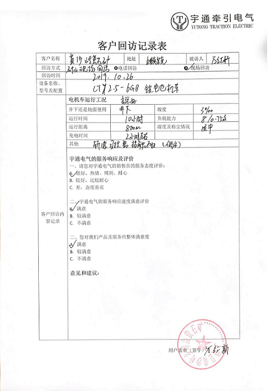 鋰電池電機(jī)車客戶回訪反饋表及視頻
