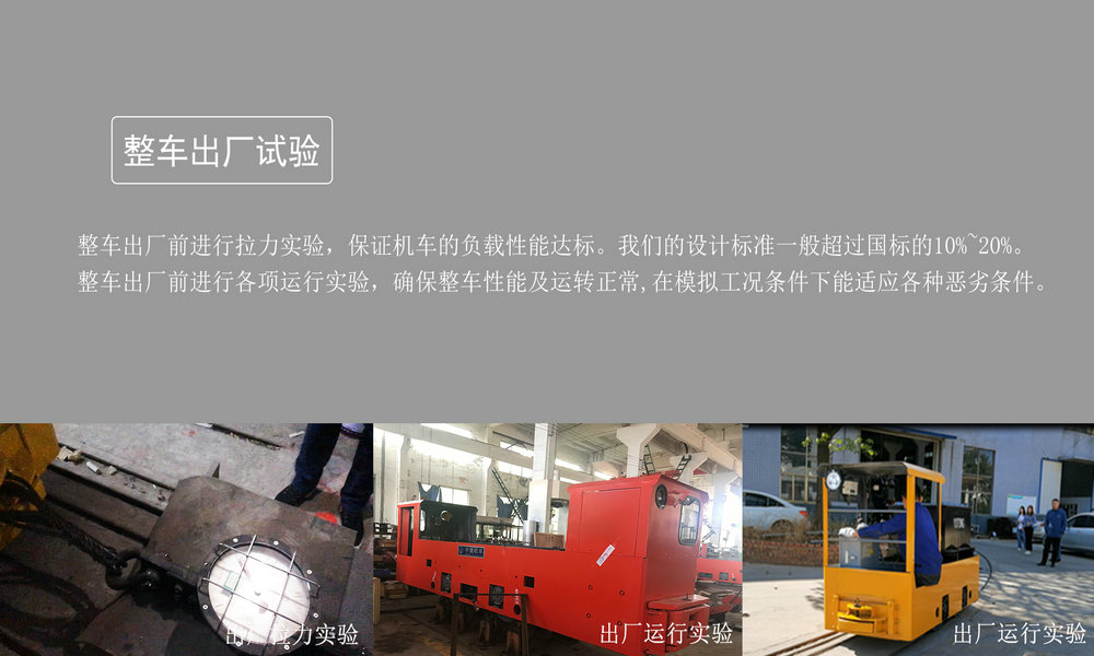 特殊定制:標準的2.5噸電機車采用的是3.5KW的直流電機,如礦井環(huán)境坡度大于‰3,則其牽引力會受到影響(正常坡度載貨力約20-25噸,受影響后可能會導致車子負載能力降低)。因此為了滿足不同礦井環(huán)境的要求以及對載貨能力有較高要求的情況下,我們可特殊定制重載型,請在訂貨時與銷售人員說明情況或提供需求,我司將會根據(jù)要求給出電機車方案。